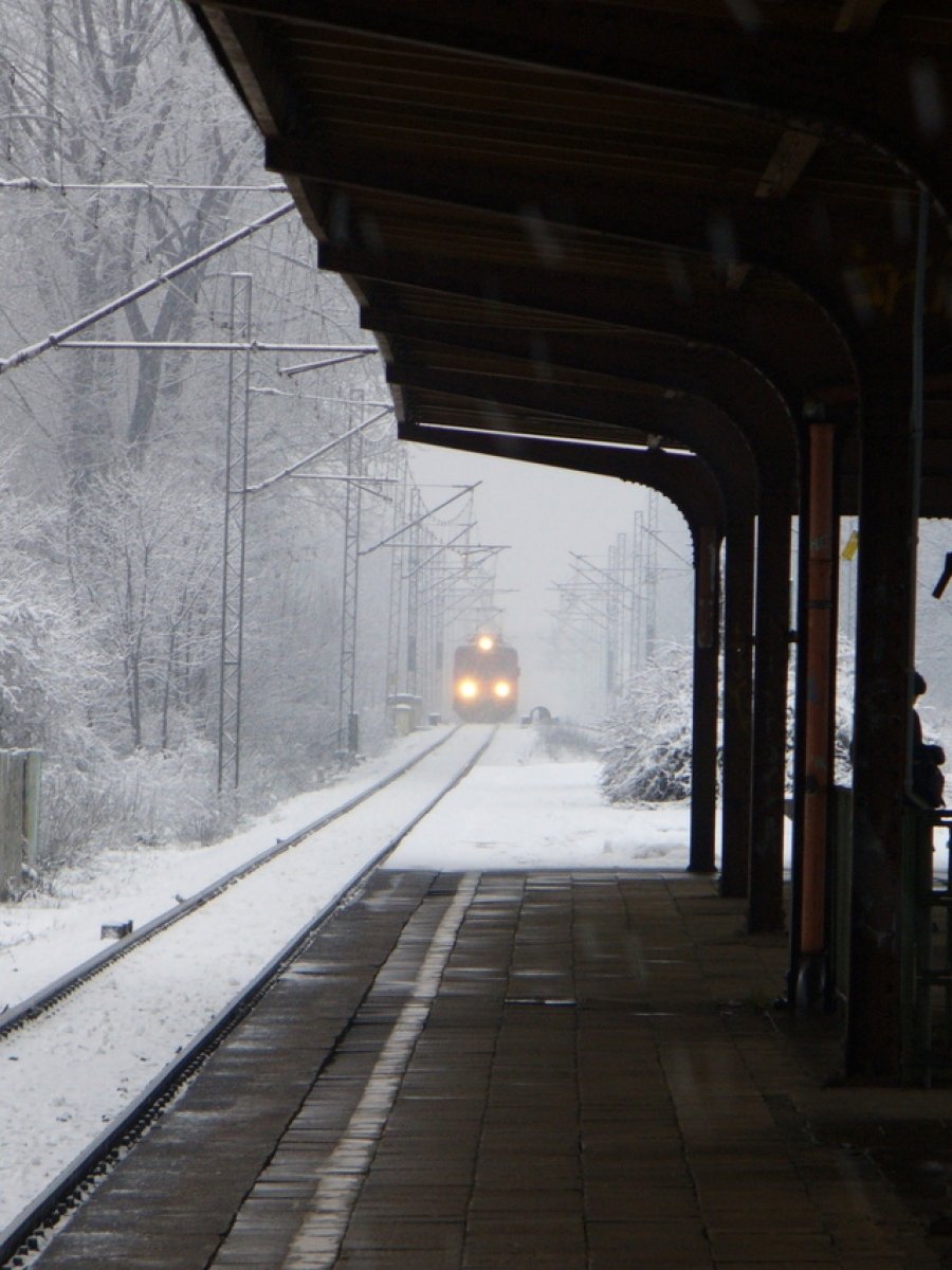 She stood on the platform alone, waiting for the train.  She'd come before to catch the Majestic Express, but had never been brave enough to board.  The train's final destination was not tangible, really.  All she'd heard was that the final stop was unbelievably beautiful--unbelievable being the prime descriptor.  She felt a lot more comfortable knowing what she could expect.  Here, in this place, she could count on leaden skies, the gray landscape--bare trees, with their dark branches blanketed in snow.  This quiet beauty was not unbearable.  And she had a warm coat, a red scarf she wrapped around her neck, a woolen cap and gloves.  She could bear the cold just fine.  But was there more?  She'd lived in the same climate for so long, she didn't know if she could risk to explore some place different, some place warmer...