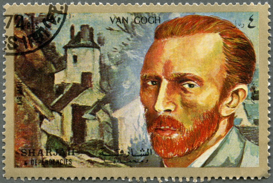 Van Gogh began his career first as an art dealer, and then as a minister--and not a very good one, according to his congregation, as he could be abrasive with people. At age 27 he moved from the ministry and became a full-time artist. He had no formal training. Although most of his contemporaries were creating dark, shadowy paintings, Van Gogh was attracted to bright colors and used them in this work, especially drawn to wide blue skies and flowers. Sunlight. Nature was his muse. Every place he lived, he brought prints of artists he admired and hung them on his walls for inspiration.